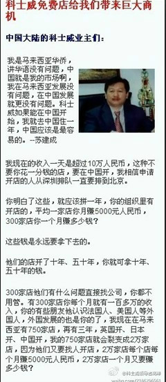 王者使者QQ:2311429430↑科士威全國加盟熱線↑:15928855671↑科士威王者品牌團(tuán)隊(duì)◆誠邀天下有志之士共創(chuàng)偉業(yè)◆王者使者QQ:2311429430◆科士威王者品牌團(tuán)隊(duì)◆王者使者◆使者QQ:2311429430◆誠邀天下有志之士共創(chuàng)偉業(yè)◆科士威公司目前結(jié)合全世界四大生意模式,第一是量販?zhǔn)浇?jīng)營,(大型超市,如沃爾瑪),以量制價(jià)以產(chǎn)品集全吸引消費(fèi)者.第二連鎖式經(jīng)營,如麥當(dāng)勞,肯德基,以數(shù)