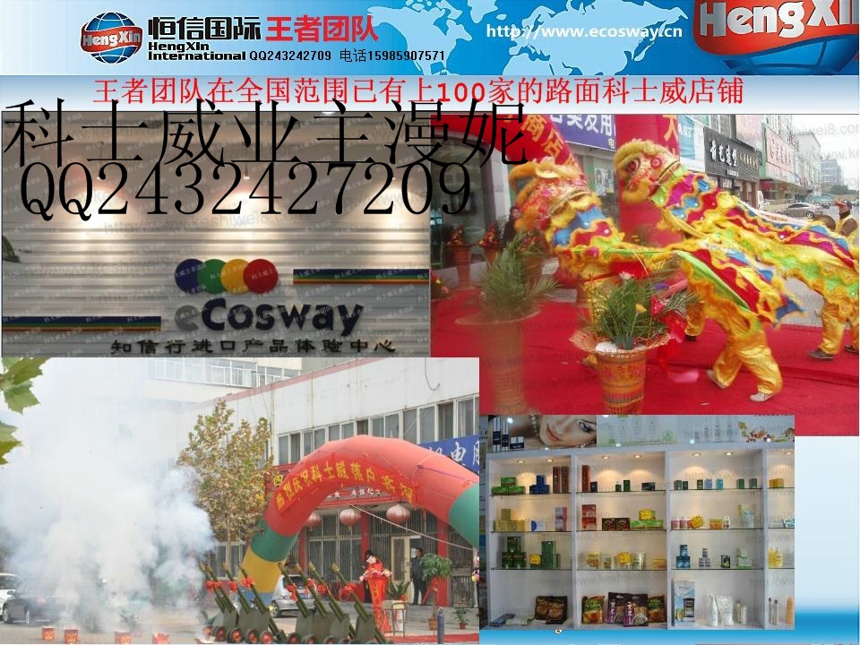 http://2432427209.qzone.qq.com主題:分享E科士威一個真實(shí)的在家創(chuàng)業(yè)機(jī)會(按順序看完就能發(fā)現(xiàn)未來的金礦)21世紀(jì)要么電子商務(wù)要么無商可務(wù)。-----比爾·蓋茨誰能把握時代趨勢誰就能掌控未來財富!選擇大于努力!我過去了解過直銷,不過一直都沒有去做直銷,因為感覺難度大,也怕做不起來傷人脈。直到我了解到科士威,我終于是被打動了。說做就做。至今做了好幾個月了,感覺確實(shí)好,所以想