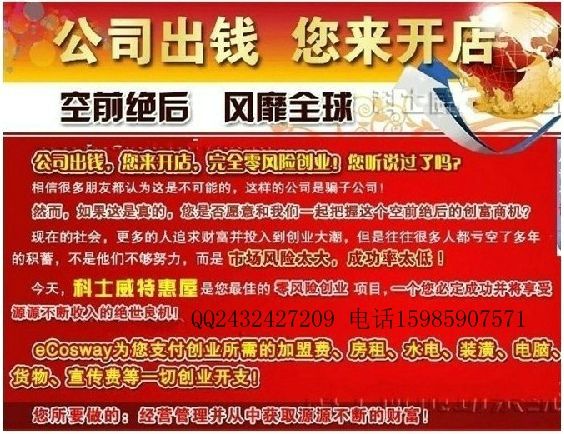 一個轟動全球的商業(yè)模式,在家創(chuàng)業(yè),零投資無風(fēng)險、換一個品牌消費(fèi)就能換一個人生!花您本來就該花的錢,賺您本來賺不到的錢!低門檻、零投入!兼職、創(chuàng)業(yè)均可!一臺電腦就可以做全球市場!無需推銷,無需囤貨,無需好口才!一個人人可為的事業(yè)機(jī)會。我們會告訴您如何足不出戶,打造您的網(wǎng)上“沃爾瑪”,網(wǎng)絡(luò)地面同時經(jīng)營,擁有一家經(jīng)營幾千款世界知名品牌的網(wǎng)上超市嗎?類別包括家居日用、美容護(hù)膚、營養(yǎng)保健、香水彩妝、汽車保養(yǎng)