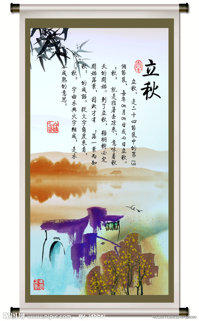 明天便是立秋,也是我的生日,順道祝福一下,哈哈!大暑之后,時(shí)序到了立秋。秋是肅殺的季節(jié),預(yù)示著秋天的到來。歷書曰:“斗指西南維為立秋,陰意出地始?xì)⑷f物,按秋訓(xùn)示,谷熟也?!边@時(shí)太陽黃經(jīng)為135度。從這一天開始,天高氣爽,月明風(fēng)清,氣溫由熱逐漸下降。有諺語說:“立秋之日涼風(fēng)至”,即立秋是涼爽季節(jié)的開始。但由于我國地域遼闊幅員廣大,緯度、海拔高度不同,實(shí)際上是不可能在立秋這一天同時(shí)進(jìn)入涼爽的秋季的。從