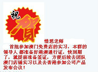實習(xí)店長:惜恩Q7572369222012隨著大陸市場科士威的爆發(fā),我們王者眾贏團隊迎來了澳門的首家免費店,很幸運這次有機會去澳門參加店長實習(xí),澳門是一個非常漂亮的城市。澳門北鄰珠海,東與香港相距60公里,中間以珠江口相隔。澳門是一個自由港,也是世界四大賭城之一。自從澳門回歸中國之后,經(jīng)濟迅速增長,經(jīng)濟繁榮,他比較出名的是輕工業(yè)、美食、旅游業(yè)、酒店和娛樂場,澳門現(xiàn)在也是亞洲最發(fā)達、最富裕的地區(qū)。澳