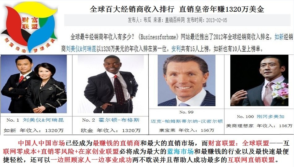 聯(lián)系QQ:2462828783。財(cái)富聯(lián)盟,全球聯(lián)盟,互聯(lián)網(wǎng)住家創(chuàng)業(yè)導(dǎo)師-黃蓉:隆力奇財(cái)富聯(lián)盟優(yōu)秀主持人,隆力奇財(cái)富國(guó)際聯(lián)盟-互聯(lián)網(wǎng)零風(fēng)險(xiǎn)零成本住家創(chuàng)業(yè)導(dǎo)師,資深顧問。隆力奇財(cái)富聯(lián)盟愛心創(chuàng)業(yè)聯(lián)盟創(chuàng)始人。