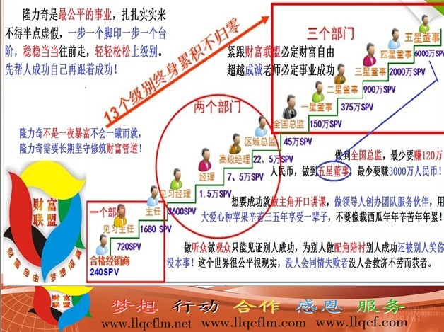 2011年8月,隆力奇財(cái)富聯(lián)盟創(chuàng)始人成誠(chéng)老師,足不出戶堅(jiān)守互聯(lián)網(wǎng)在家創(chuàng)業(yè),短短2年成功晉升隆力奇全國(guó)總監(jiān),為隆力奇公司創(chuàng)造近千萬(wàn)元的業(yè)績(jī),幫助傘下多位伙伴成功晉升為區(qū)域總監(jiān)和高級(jí)經(jīng)理。12月18日成誠(chéng)老師第一次下地面去隆力奇公司接受表彰,隨后飛往深圳獎(jiǎng)勵(lì)現(xiàn)金3000元給傘下伙伴。