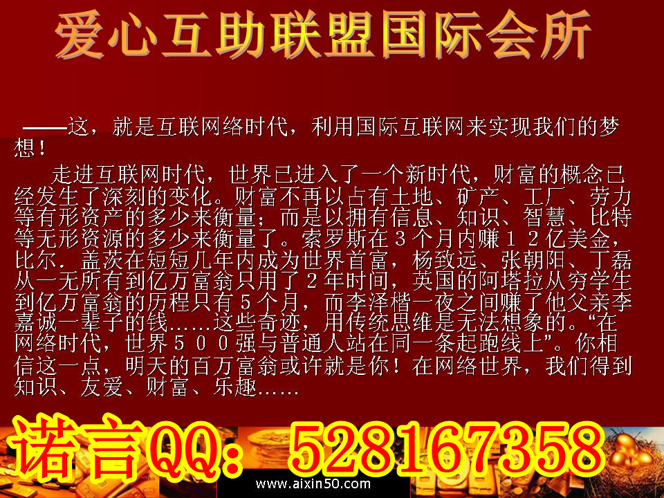 交流QQ:2585626288一臺(tái)電腦、一根網(wǎng)線、住家創(chuàng)業(yè)...談笑間輕松成交全球生意!不出差、不囤貨、不送貨、不電話邀約跟進(jìn)...盡顯做網(wǎng)商的高貴和優(yōu)雅!拿牌公司、專業(yè)系統(tǒng)、網(wǎng)商教練...隨時(shí)得到系統(tǒng)和老師的支持與協(xié)助!網(wǎng)上人脈,網(wǎng)上培訓(xùn),一次定位,永不歸零,無(wú)需沖業(yè)績(jī),無(wú)后續(xù)培訓(xùn)運(yùn)作等費(fèi)用。E化直銷(xiāo)現(xiàn)火爆招商中........