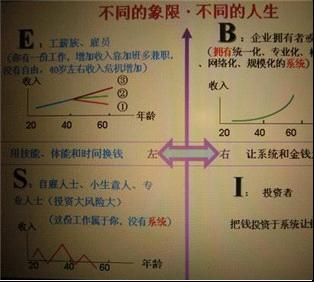 綜上所述,E、S象限的族群難以賺大錢獲得財務自由,B、I象限的族群較容易獲取錢財從而財務自由。要擁有系統(tǒng)為自己工作,才能跨入B象限,從而實現(xiàn)人人追求的財務自由。