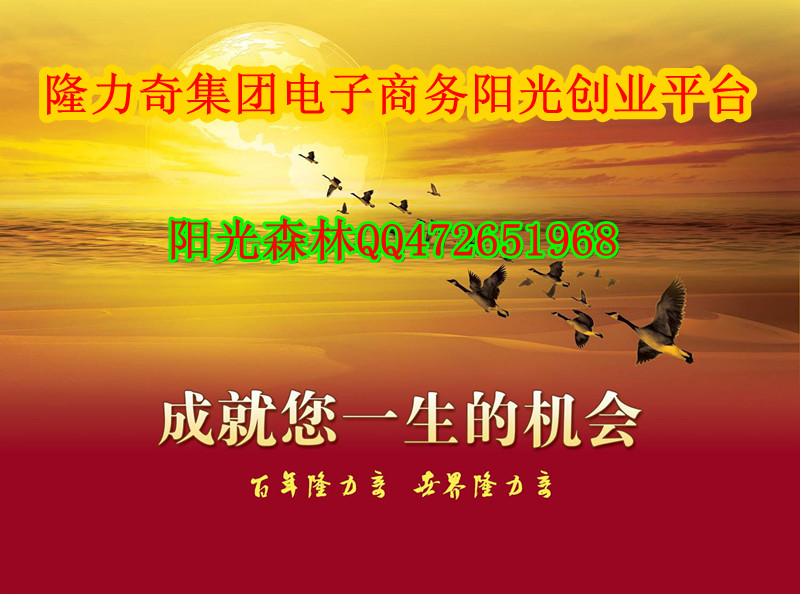 隆力奇陽(yáng)光國(guó)際電子商務(wù),一臺(tái)電腦,一根網(wǎng)線,足不出戶,在家創(chuàng)業(yè)。系統(tǒng)手把手教您由網(wǎng)民變成網(wǎng)商,在互聯(lián)網(wǎng)上做電子商務(wù)創(chuàng)大業(yè)實(shí)現(xiàn)昔日的人生夢(mèng)想!
