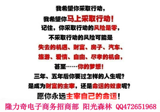 隆力奇陽光國際電子商務(wù)招商部:【蘇州】陽光森林 QQ:472651968