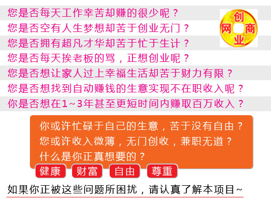 電子商務(wù)+網(wǎng)絡(luò)營銷=普通人實(shí)行百萬夢想的生意!一年十萬!三年百萬!五年……!尋找敢于挑戰(zhàn)此目標(biāo)的營銷精英聯(lián)手,共創(chuàng)人生輝煌!