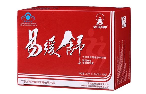 易緩舒軟膠囊是依據(jù)女性生理特點(diǎn)和保健需求專門研制的一款適合長(zhǎng)期服用的保健品,具有平衡內(nèi)分泌、淡斑祛皺、提神抗壓、增加骨密度、舒緩更年期綜合癥等五重功效,同時(shí)兼具功能全面、服用方便、安全性高、劑型高檔、方便搭配五大優(yōu)勢(shì)。易緩舒軟膠囊的上市,是太陽(yáng)神在新一年強(qiáng)化新品引進(jìn),夯實(shí)產(chǎn)品基礎(chǔ),推動(dòng)市場(chǎng)發(fā)展,保持良好發(fā)展勢(shì)頭的開端!