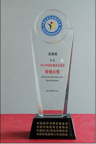 無限極喜獲中國企業(yè)社會責(zé)任特別大獎6月17日,由由中國外商投資企業(yè)協(xié)會、中國保護(hù)消費(fèi)者基金會、中國民(私)營經(jīng)濟(jì)研究會、中國環(huán)境新聞工作者協(xié)會和北京市石景山區(qū)人民政府聯(lián)合主辦的“第三屆企業(yè)社會責(zé)任年會”在京舉行。本次年會主題為“企業(yè)的責(zé)任戰(zhàn)略與創(chuàng)新”。年會上隆重揭曉“2011(第三屆)中國企業(yè)社會責(zé)任榜單”。無限極(中國)有限公司經(jīng)過嚴(yán)格審核,入選“中國企業(yè)社會責(zé)任榜100強(qiáng)”,并獲“2011中國企業(yè)社會責(zé)任特別大獎”和“2011中國企業(yè)社會責(zé)任公益獎”兩項(xiàng)殊榮。