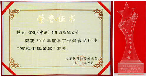 寶健榮獲北京保健食品行業(yè)貢獻十佳企業(yè)