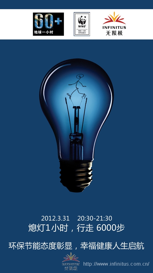 “無限極地球一小時”微博已經(jīng)開啟,請在新浪微博搜索“熄燈1小時-行走6000步”,與我們一起分享你的關燈計劃吧