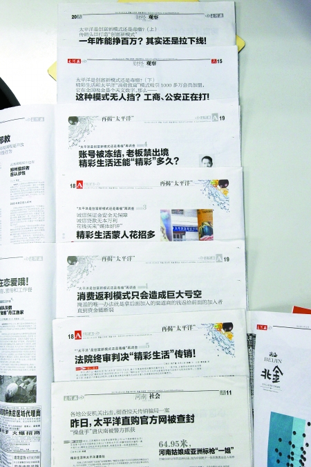 4月5日,“精彩生活”撰寫《誰來為太平洋直購“傳銷”錯案負責(zé)?》的文章,廣為發(fā)布,為傳銷“招魂”?!熬噬睢奔捌淝郎?,通過各種媒體攻擊大河報報道其違法傳銷詐騙行為是“造謠”,并組織律師團準備將大河報起訴到法院,要求賠償損失。