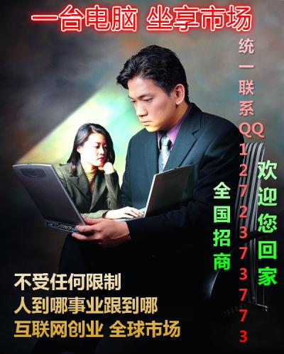 互聯(lián)網(wǎng)直銷使普通人由平凡而璀璨,由約束而自由,由卑微而顯貴。今天有些人還沒有來得及從這個(gè)直銷的噩夢(mèng)中驚醒,而新的一場(chǎng)革命像海嘯一樣又鋪天蓋地而來!機(jī)會(huì),是留給懂得把握的人;成功,是留給懂得付出的人;財(cái)富,是留給懂得追求的人!機(jī)會(huì),人的一生中不會(huì)有幾次,許多人都為與機(jī)會(huì)擦肩而過而后悔,請(qǐng)不要再丟掉這次機(jī)會(huì)。網(wǎng)商系統(tǒng)核心領(lǐng)導(dǎo)人業(yè)務(wù)QQ:1272373773招商熱線:13751105689做對(duì)趨勢(shì),把握[詳細(xì)]